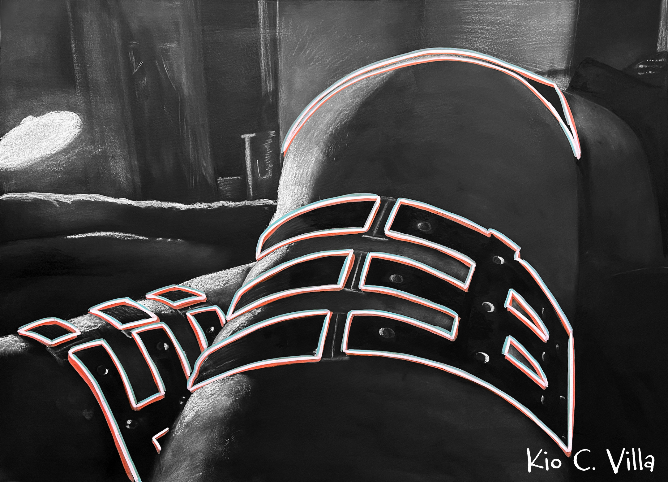 Charcoal and acrylic marker on paper